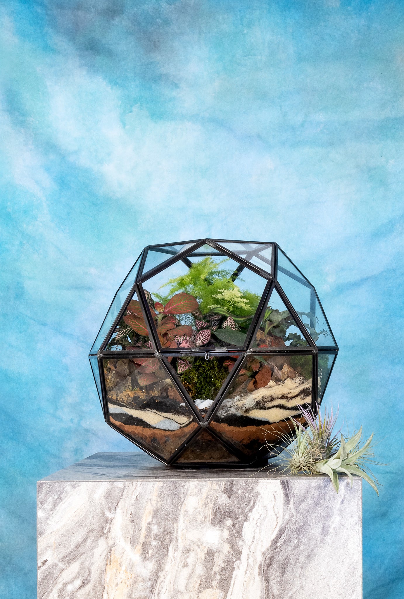 Whether you're looking for a piece to show off in your living room or want to add a touch of greenery to your home or office, this magnificent geometrical terrarium is the perfect choice.